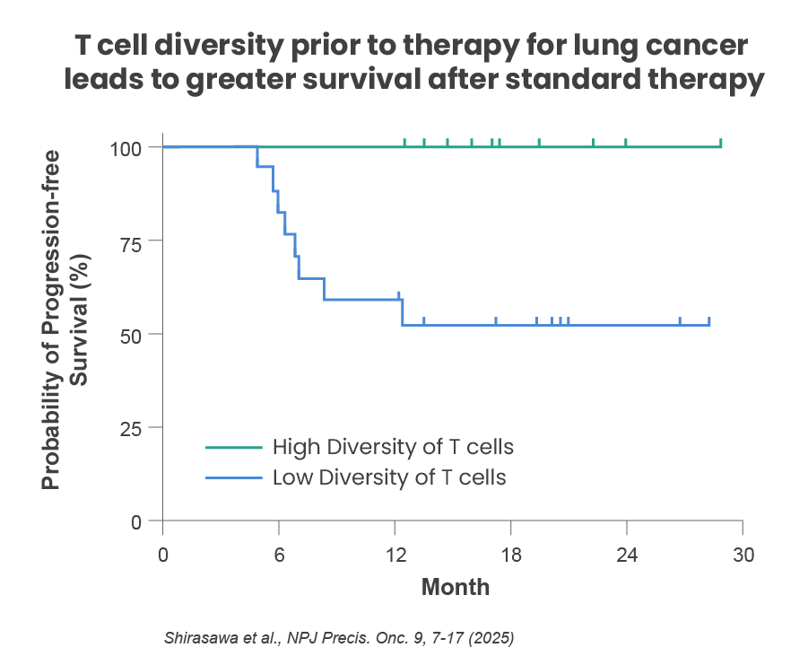 A broad T cell repertoire at the start of cancer therapy substantially improves overall survival by 50% and lowers relapse and opportunistic infections thereafter.